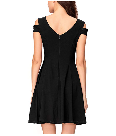 - Sweetheart neckline, above the knee, hidden back zipper, sexy v-back, cold shoulder, short sleeves A-line dress.